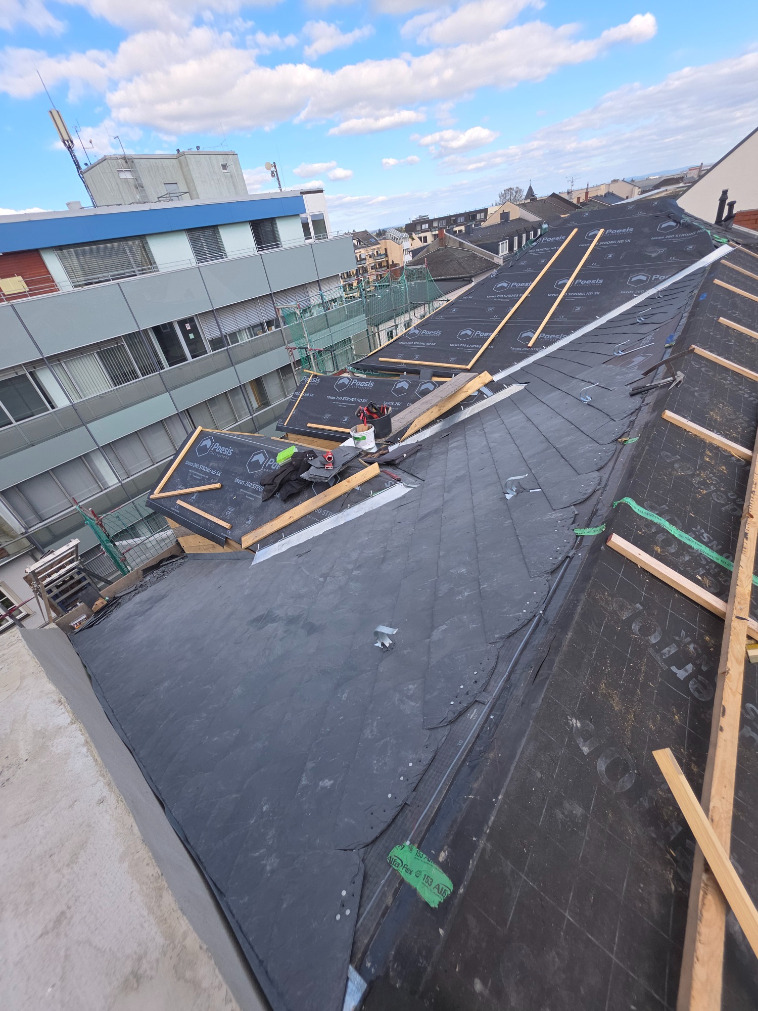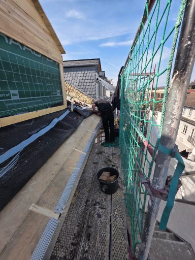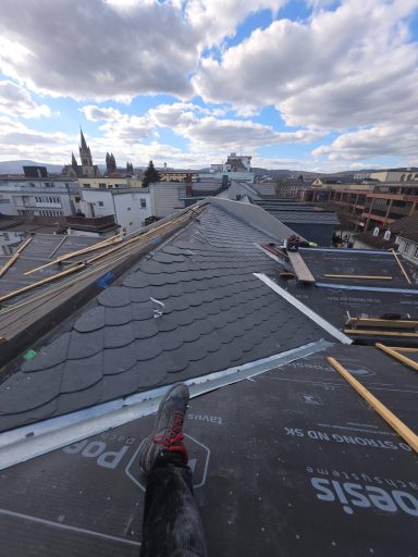 Aktuell führen wir umfangreiche Schiefer- und Spenglerarbeiten in der Fußgängerzone von Bad Homburg aus.
